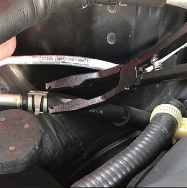 Serrated jaws give a secure grip onto spring loaded hose clamps