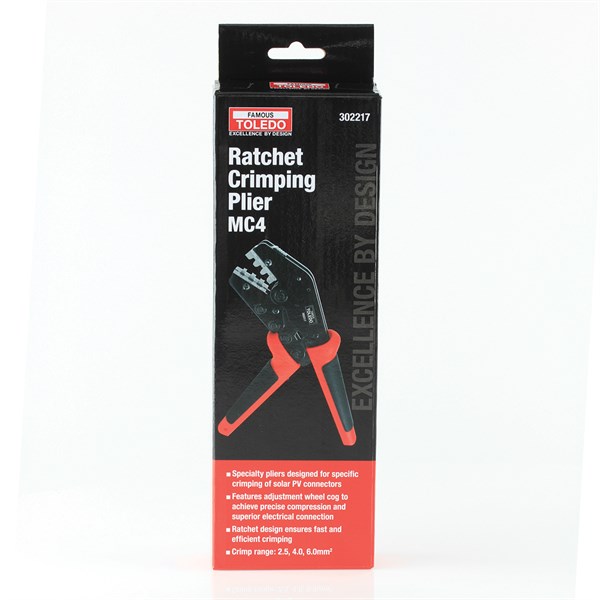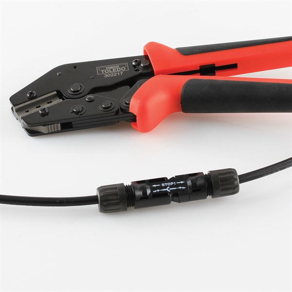 Specialty designed pliers for specific crimping of MC4 Solar PV connectors with a crimp range from 2.5, 4.0, 6.0mm²
