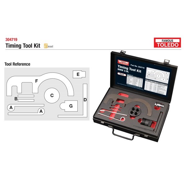 For the locking and alignment of the camshafts, crankshaft, tensioner and injection pump during the removal and installation of the engine timing chain and other engine servicing and repairs
