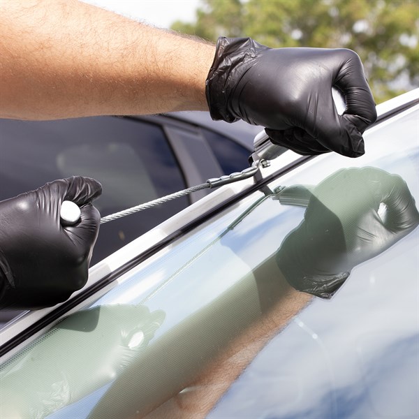 Cuts through the windscreens rubber surround using the hardened carbon steel blade