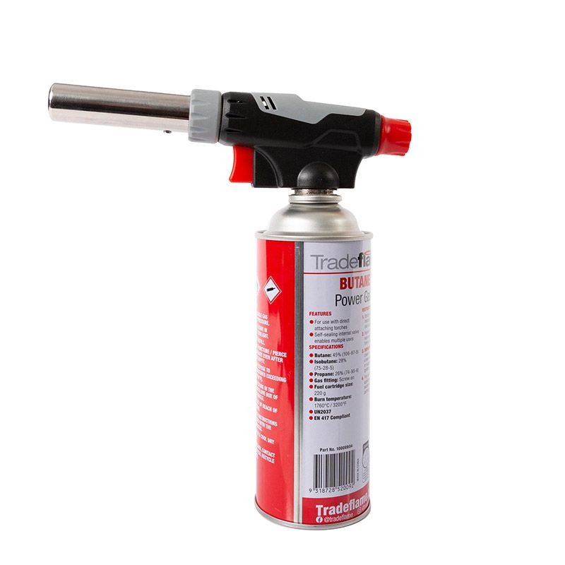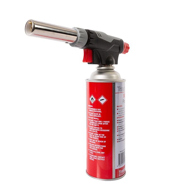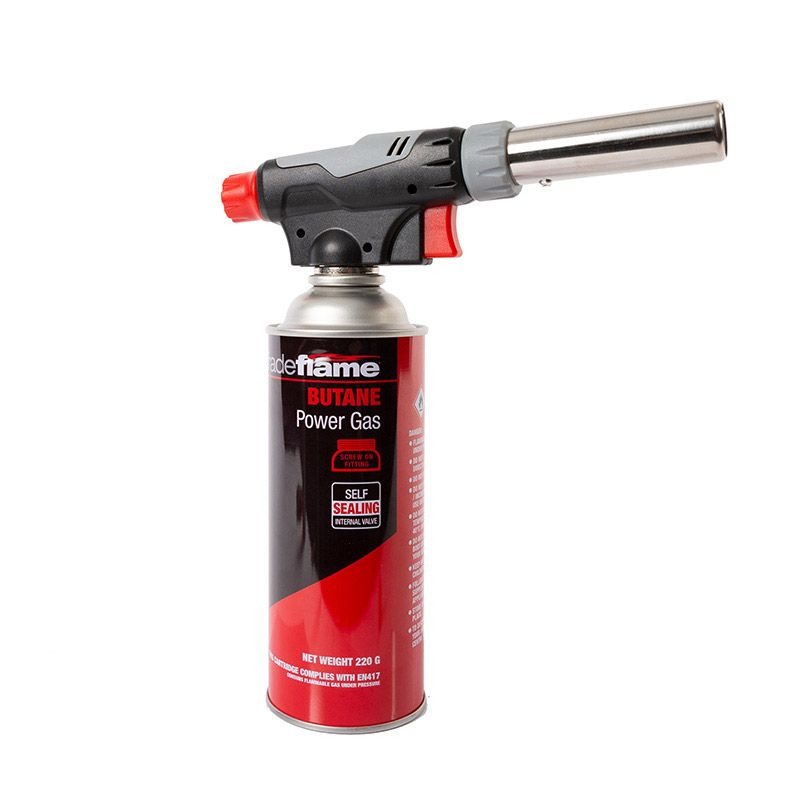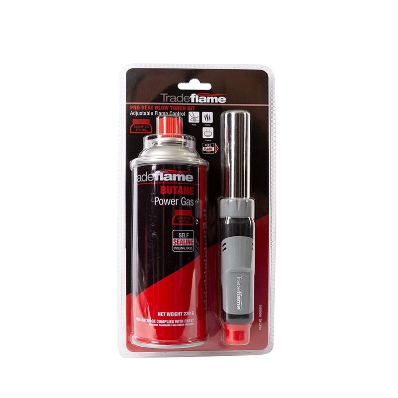 The Pro Heat Blow Torch Kit features adjustable air control and is compatible with screw-on fitted Butane Gas. Adjustable flame, air control and anti-flare features make the Pro Heat Blow Torch the ideal choice for beginners, DIY project, culinary dishes or lighting that BBQ or firepit!