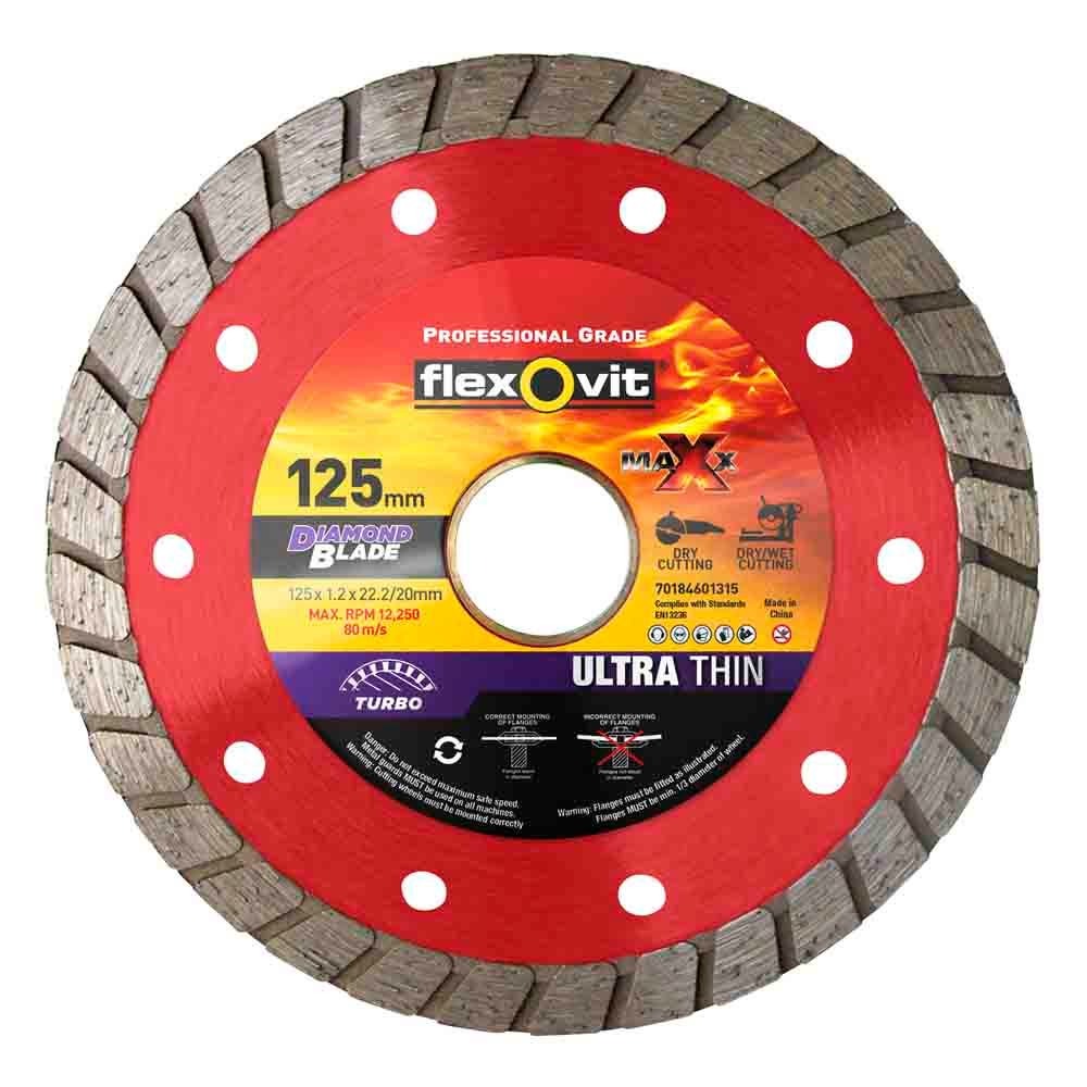 Home » Shop » CUTTING TOOLS (HSS & Carbide) » ABRASIVES » FLEXOVIT ULTRA THIN TURBO BLADES - FOR ANGLE GRINDER/ CIRCULAR SAW/ TILE SAW » FLEXOVIT ULTRA-THIN TURBO 125 x 1.2 x 22mm FLEXOVIT