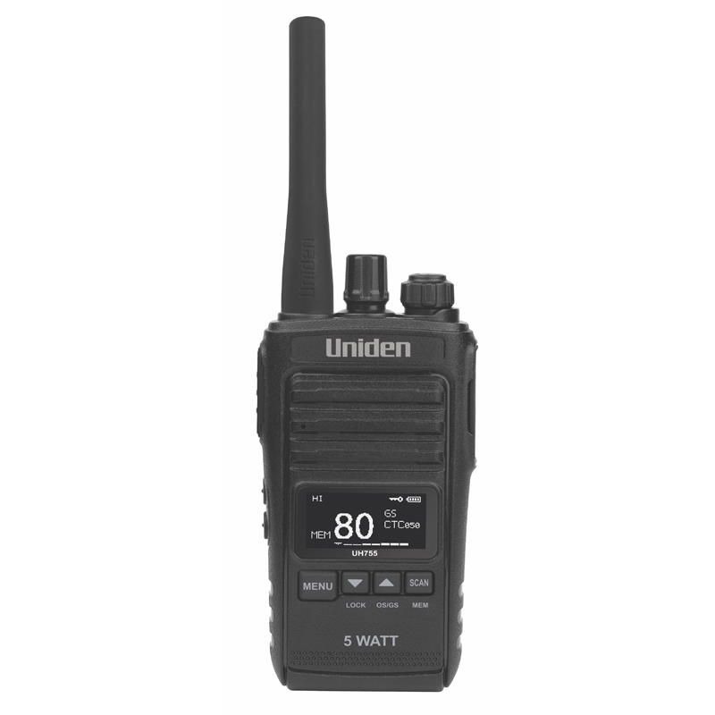 The UH755 UHF CB handheld radio is a solid 5 Watt power UHF radio that can deliver up to 17km of range. This makes it the perfect unit for professionals who need a rugged and heavy duty radio suitable for various conditions.