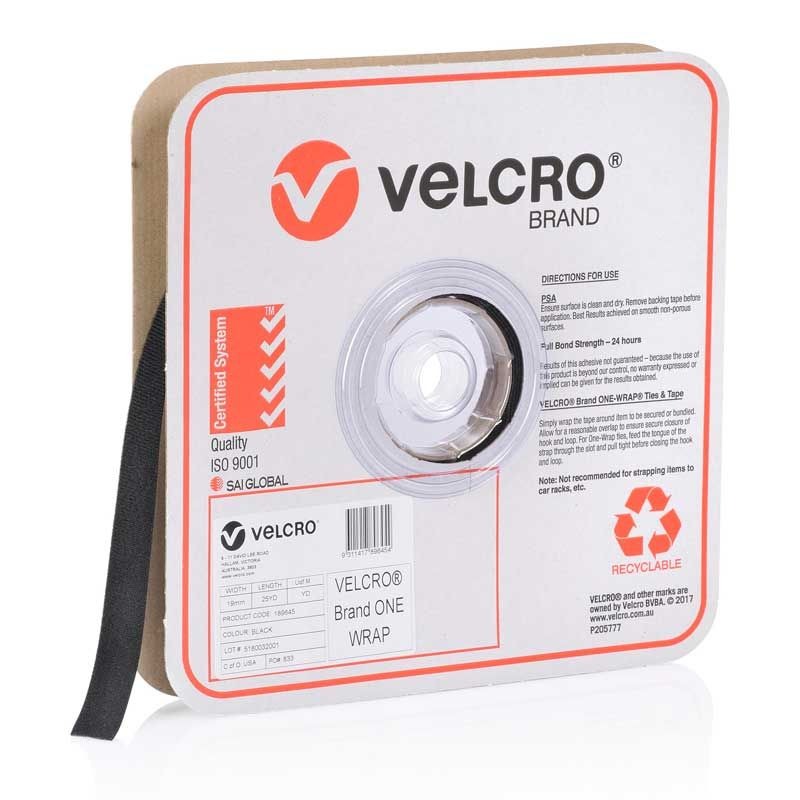 VELCRO – ONE-WRAP CONTINUOUS BLACK 19mm x 22.8m ROLL