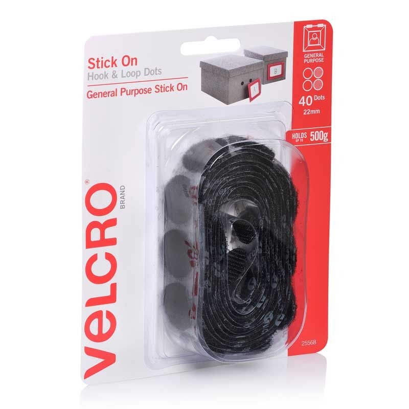 Home » Shop » HAND TOOLS » VELCRO – VELCRO STICK ON DOTS, BLACK 22mm DIA, [40] SETS ON A ROLL