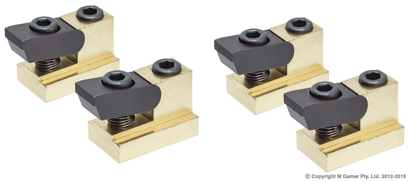 • Each set consists of four channel clamps • Ideal for thin workpieces • Strong clamping force • Quick setting • Suitable for light duty cutting or milling and can be used on EDM Machines Table slot: 13.5 mm Base width: 22 mm Base height:8 mm Slot height:18 mm Length: 42 mm