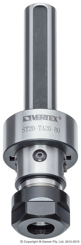 • Tension and compression tap holder • ER collet system for accurate tapping • Adjustable location plates for holding the tap square • Square shank of tap is secured by grub screws • Hardened and Ground Shank: 20×80 mm Collet: ER20 Compression Distance: 6 mm Capacity: M3-M16