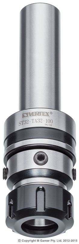 • Tension and compression tap holder • ER collet system for accurate tapping • Adjustable location plates for holding the tap square • Square shank of tap is secured by grub screws • Hardened and Ground Shank: 32×100 mm Collet: ER32 Compression Distance: 6 mm Capacity: M3-M25