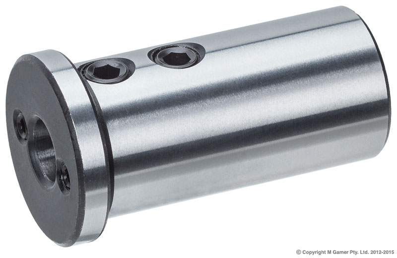 • Reducing sleeve to hold parallel shank cutters • Designed for CNC lathe turrets • Uses grub screws to locate the cutter • Hardened and ground internal and external surfaces OD: 20 mm Length: 45 mm ID: 8 mm