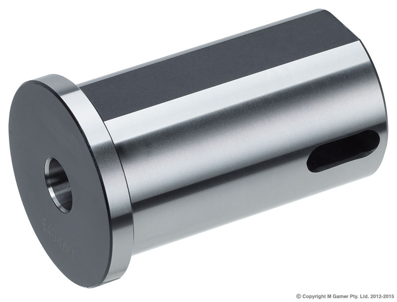• Straight shank to morse taper adapter • Hardened and ground internal and external surfaces • Designed for CNC lathe turrets OD: 40 mm Length: 70 mm ID: MT1