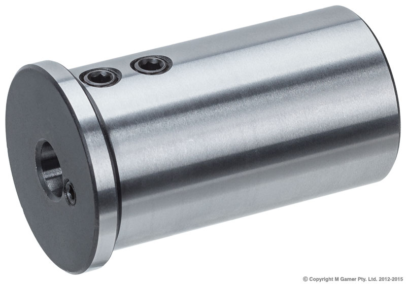 • Reducing sleeve to hold parallel shank cutters • Designed for CNC lathe turrets • Uses grub screws to locate the cutter • Hardened and ground internal and external surfaces OD: 50 mm Length: 85 mm ID: 16 mm