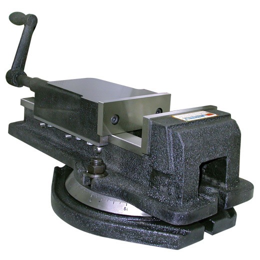 • Super Open Vice 4″ • Three pin positions to locate moving jaw • Sliding bed ways flame hardened and ground • Accurate to within 0.02 mm • Comes complete with swivel base Jaw width: 110 mm Jaw height: 38 mm Jaw opening: 185 mm Overall dimensions: 270x135x386 mm (WxHxL) Max clamping force: 1500 kgf