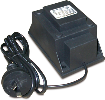 • Delivers 150W at 24VAC • Enough to run 2 x 70W lamps • Not IP rated and must be mounted inside (Keep clear of coolants near machinery) • Output is via screw terminals • Includes 4 holes for easy screw mounting • Safety approved number N16803 Primary voltage: 240VAC Frequency: 50Hz Output: 24VAC (max150VA)