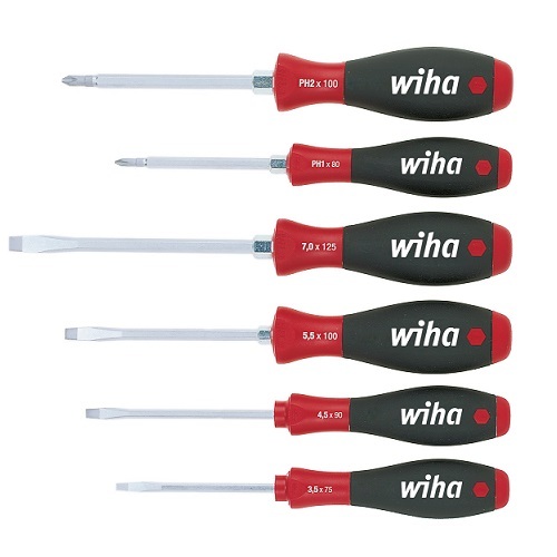 Wiha Slotted & Phillips He x Blade Screwdriver Set Blade: High-quality chrome-vanadium-molybdenum steel, through-hardened, chrome-plated. Wiha ChromTop® finish on tip for a perfect fit every time. Handle Ergonomic Wiha SoftFinish multi-component handle with roll-off protection. Application: Particularly suitable for dry applications. Contents 1 x Screwdriver SoftFinish 3.5mm x 75mm 1 x Screwdriver SoftFinish 4.5mm x 90mm 1 x Screwdriver SoftFinish 5.5mm x 100mm 1 x Screwdriver SoftFinish 7.0mm x 125mm 1 x Screwdriver SoftFinish Phillips with hexagonal blade and hexagon head PH1 x 80mm 1 x Screwdriver SoftFinish Phillips with hexagonal blade and hexagon head PH2 x 100mm