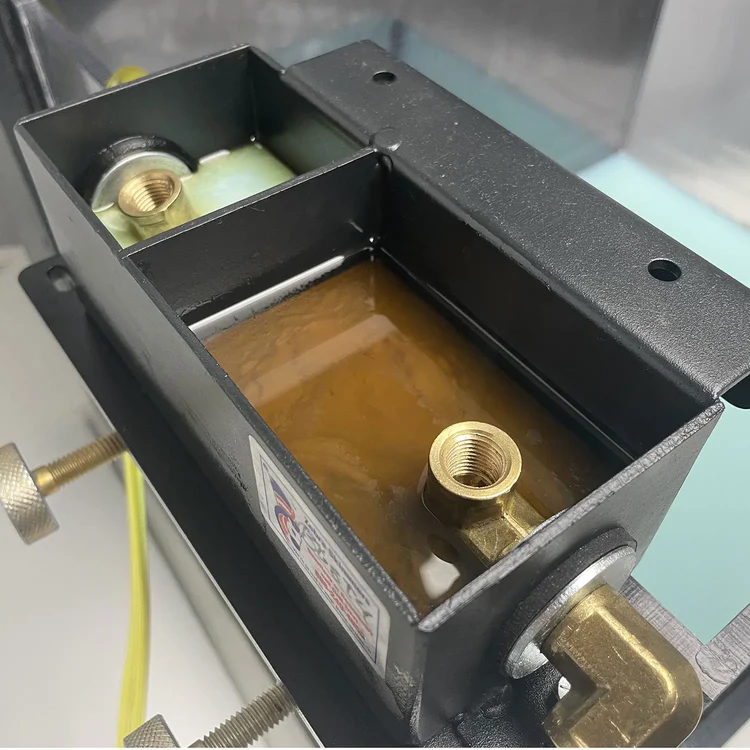Is a reservoir box, the tramp oil will float on top surface, then spill into funnel, runs down to rubbish / waste container.